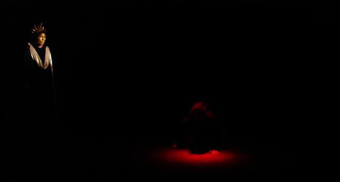 A los actores se les solicita también una contención que no impide, en los momentos culminantes de la revelación, la convulsión y el grito frente al horror. Yocasta (una eficaz Alicia Mezza) se ahorca y con los alfileres de oro de su manto, Edipo se perfora los ojos. De heroico vencedor de la esfinge, declina a harapo sanguinolento: Gonzalo Villanueva asume dignamente el papel, sin más alardes histriónicos que los necesarios. Sergio Oviedo otorga serena templanza (y su magnífica voz) a un Creonte ecuánime, lejos de la habitual caracterización de villano. Puesto que nunca sabremos cómo se comportaba el coro en las puestas originales de las tragedias griegas, cada director contemporáneo propone su versión: esta, con algo de solemne danza ritual, es convincente. Para tomar en cuenta, un rasgo que no es común hoy en nuestros escenarios: a todos los actores se les entiende perfectamente.